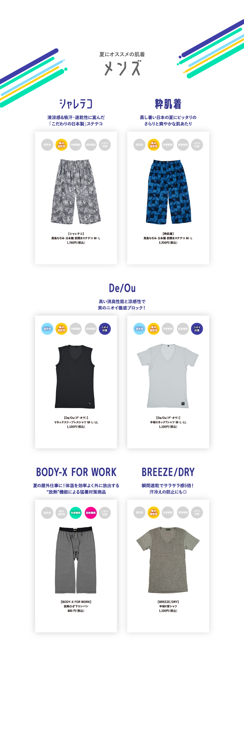 清涼感、吸汗・速乾性に富んだクレープ素材