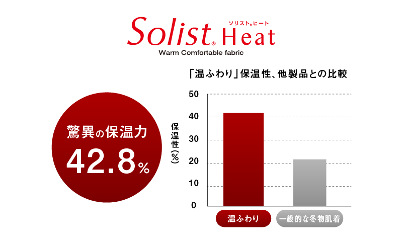 綿100%素材などの一般的な冬物肌着と比べると、その保温力は約2倍!