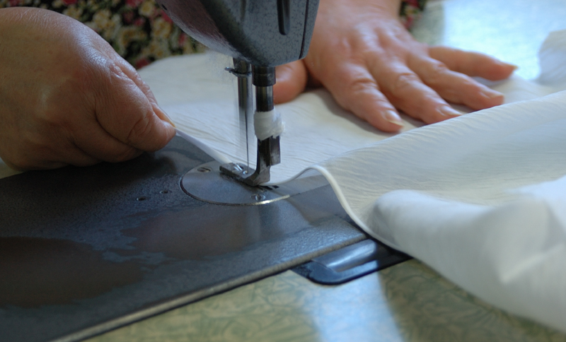 例えば布帛のトランクスやロングパンツ類のウエスト付けは、勤続24年の浜田さん。