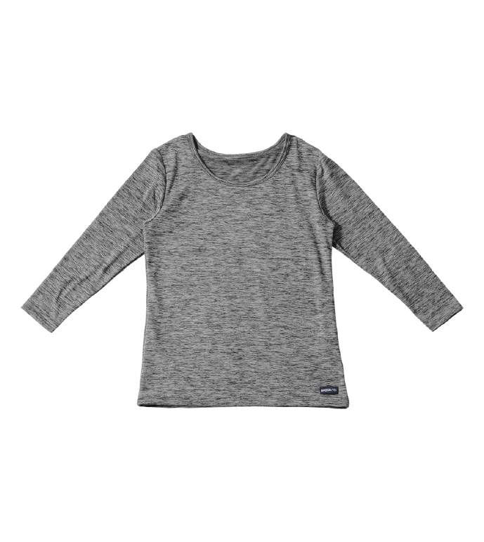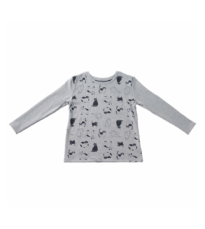 切り替え 長袖トップス ネコ柄 杢グレー M・L・LL