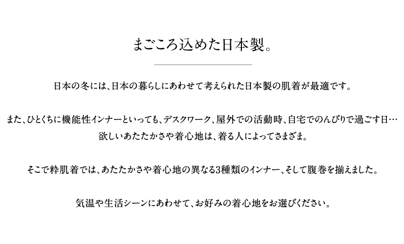 吸湿発熱素材の効果は維持しつつ、着た瞬間のあたたかさと肌ざわりの良さも実現しました。