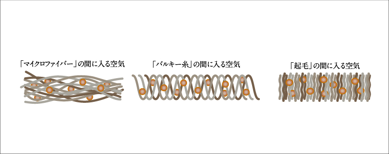マイクロファイバー、バルキー糸、起毛、3つの要素で作りあげた空気の層が、