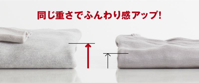 たっぷり空気を含む構造で、しっかりとした厚みがありながら、柔らかさと軽い着心地を実現しました。