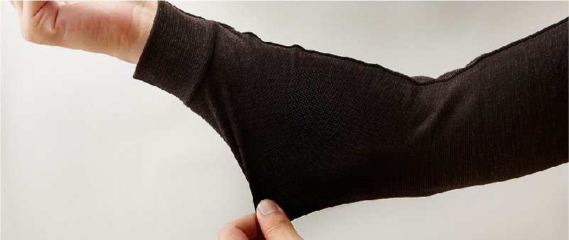 より心地よいストレッチ性を実現するため、独自の編みを採用しました。単に伸びるだけでなく、